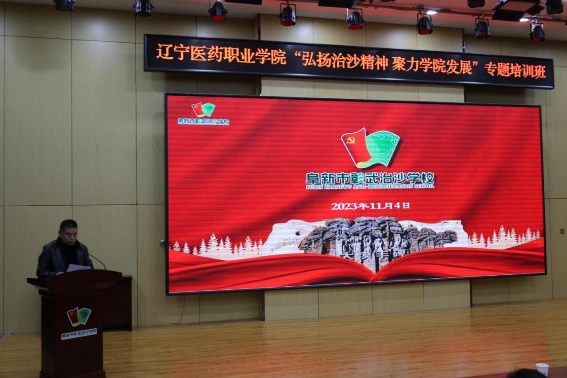 为进一步扎实开展学习贯彻习近平新时代中国特色社会主义思想主题教育,推动主题教育走深走实、见行见效,11月4日,学院党委在阜新彰武治沙学校举行党性教育基地揭牌仪式,并举办为期两天的以“弘扬治沙精神 聚力学院发展”为主题的专题培训班。中共彰武县委组织部副部长高伟出席并致辞,学院党委组织部部长刘君作培训班开班动员讲话。学院中层干部、专业带头人、党支部书记、组织员、入党积极分子、团总支书记和共青团员等41名师生代表参加仪式并培训。