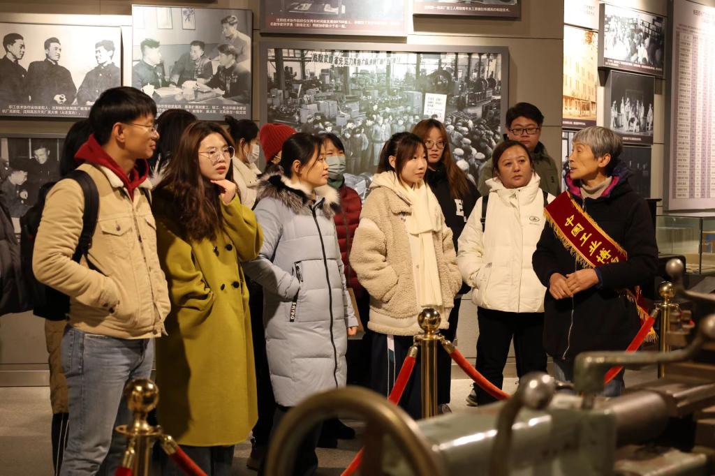 为加强大学生理论社团建设,引导学生感受红色工业脉搏,体悟大国劳动精神,传承辽宁“六地”红色文化,2023年11月11日上午,在指导教师——马克思主义学院于雪梅副教授的带领下,学校大学生理论社团(薪火社)一行35人来到中国工业博物馆参观学习。
