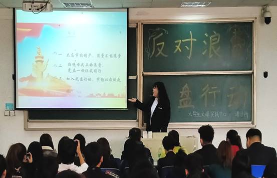 10月28日,金海浚同学进行了主题为“反对浪费,光盘行动”的宣讲。宣讲针对餐饮浪费严重的情况,呼吁大学生从自身做起,反对浪费,光盘行动。
