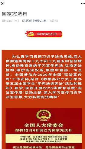 当日晚7时30分,通过腾讯会议室平台,护理系学生干部开展宪法知识宣讲,全系学生在线收听收看,积极参与,踊跃发言,学习热情高涨,达到预期的效果。同时,通过护理系微信公众号平台推出“国家宪法日”专题,普及宪法相关知识,使学生深入学习习近平总书记依法治国相关论述,弘扬宪法精神,能够知法、懂法、用法。(文、图/吕莹)