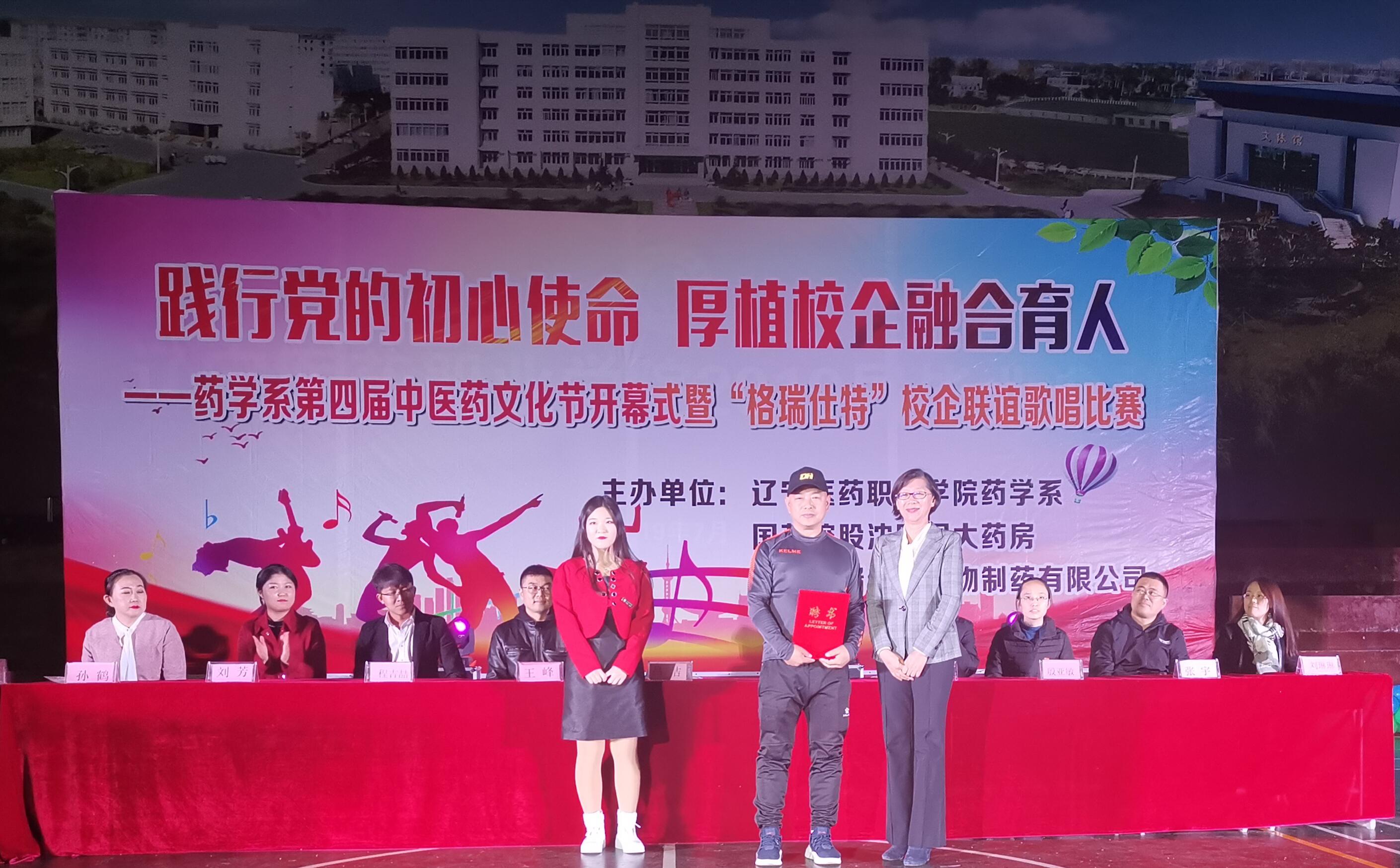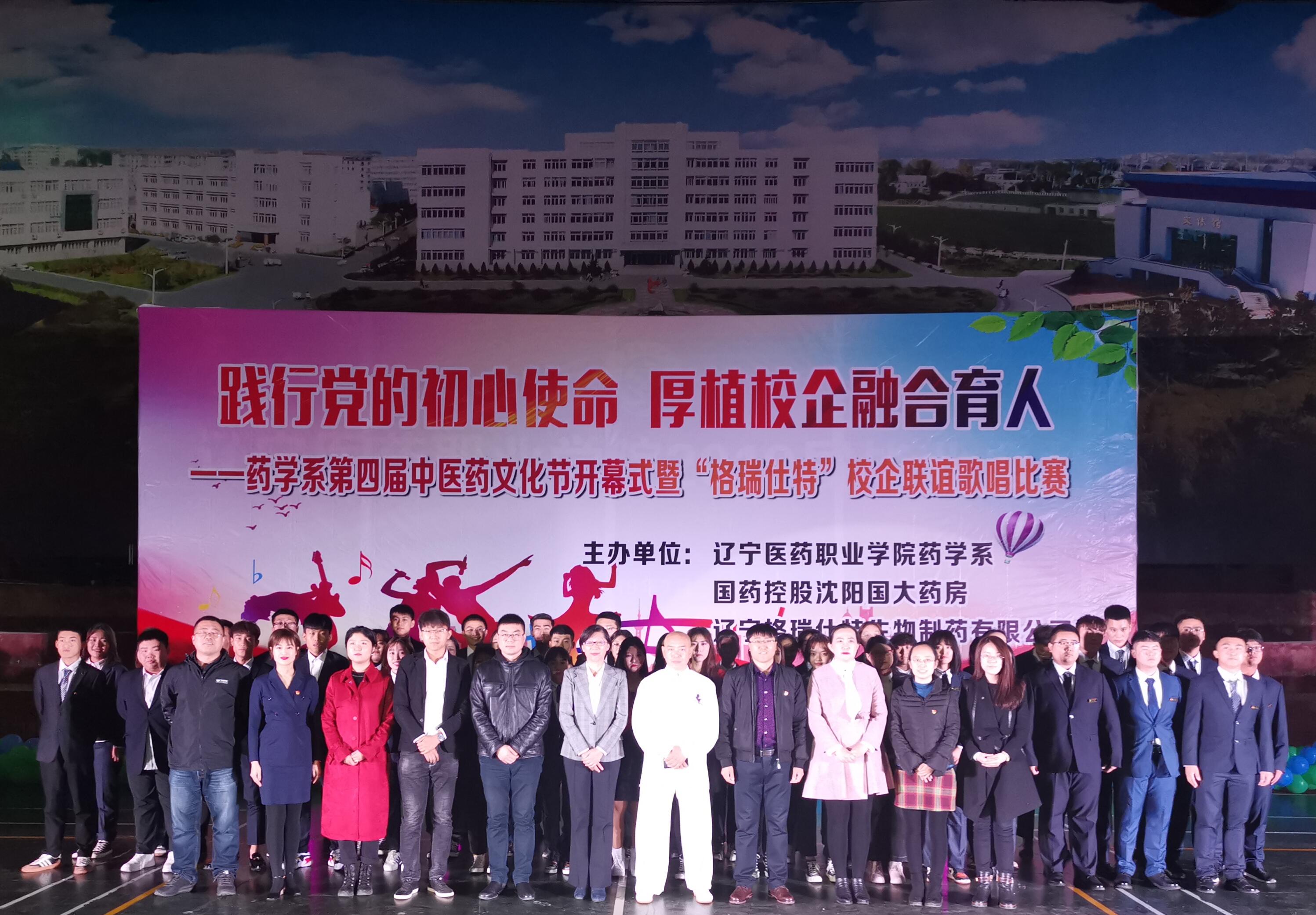 10月25日,药学系隆重举行第四届中医药文化节开幕式暨“格瑞仕特”校企联谊歌唱比赛。药学系主任吕洁、党总支书记赵云、副主任王峰、学生党支部书记殷亚敏、杨氏太极拳第五代传人段富文大师、国药控股国大药房代表刘芳与格瑞仕特有限公司代表孙鹤及药学系教师出席活动。