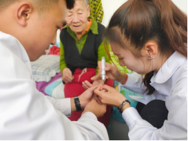志愿者们热情地为老人测血糖、量血压,还帮助他们洗脚、剪指甲,为每名老人都送去专门准备的 “爱心小药箱”,使许多老人都感动流泪。学生们也表示,在这样一个节日里,参加此次活动非常有意义,要弘扬中华民族尊老爱幼的优良传统,关爱老人,奉献社会。(文、图/李奕诺)