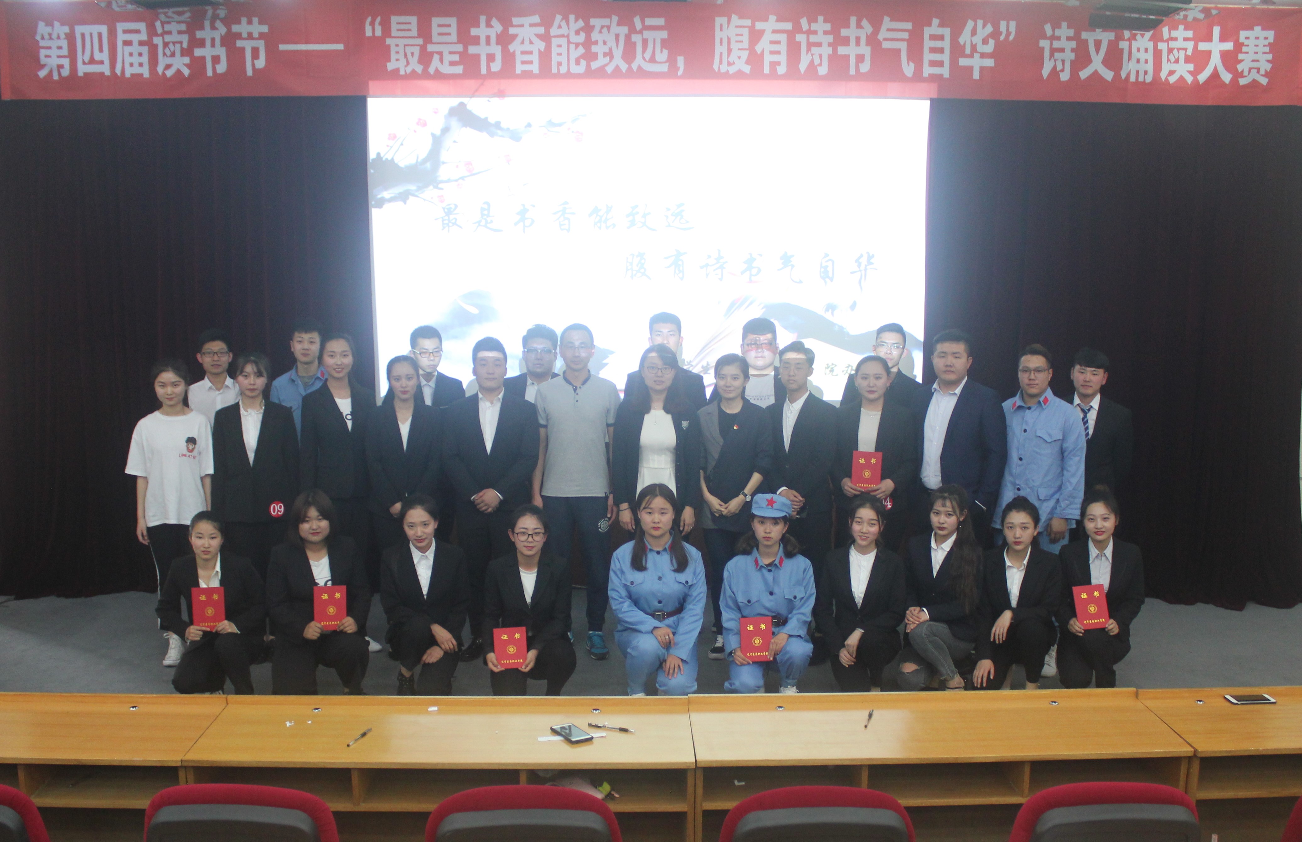 5月9日,学院第四届读书节活动之“最是书香能致远,腹有诗书气自华”中华经典诗文诵读大赛在学术报告厅举行。学生处(团委)相关负责教师担任本次比赛评委。