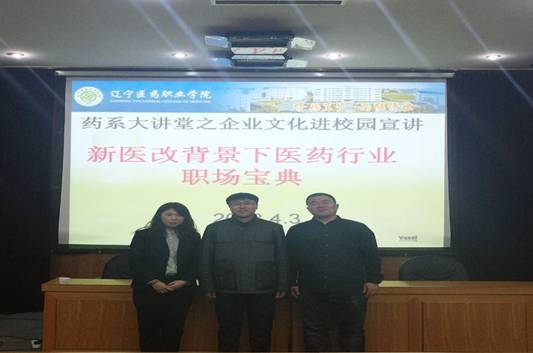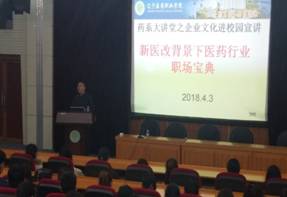 为营造企业文化进校园的浓厚氛围,加强校企合作、产教融合,推进实习就业一体化进程,使学生了解新医改背景下,医药企业的发展趋势和医药类学生的就业形势,4月3日下午,药学系在学术报告厅举行大讲堂之企业文化进校园活动,特邀国药控股国大药房沈阳连锁有限公司人力资源部张亚娴部长给学生作题为“新医改背景下医药行业职场宝典”的报告。