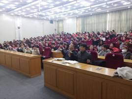 张亚娴部长从新的医药改革背景、国大药房沈阳连锁有限公司的基本情况以及医药行业职场的求职面试技巧等三个方面展开讲授,报告深入浅出,形象生动,结合当前新医改和互联网+的大背景,指出了医药行业目前面临的机遇和挑战。在讲到求职技巧时,张部长结合自己在公司的亲身经历,现身说法,互动交流,风趣幽默,让同学们获益匪浅。