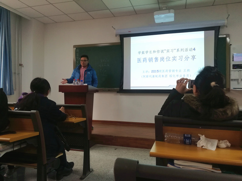 目前身为国药控股国大药房沈阳连锁有限公司天益堂旗舰店质量管理专员的石富宇同学告诉在校生如何在实习中找到自己的合理定位、如何准备面试、如何调正实习过程中的心态问题等。现任辽宁天士力大药房连锁有限公司市场专员的2015级医药营销专业(药品营销方向)崔子威同学以自己实习面试的亲身经历,告诉学弟学妹们一定要明确自己的目标,不断尝试、不怕失败,在任何一个岗位上只要努力就会有所收获。曾经获得过国家励志奖学金、市长奖学金的崔立新同学在专升本考试前一直在实习岗位上坚持工作,克服各种困难,抓紧时间复习,最终以优异的成绩考上了沈阳药科大学市场营销专业继续深造,她表示,正因为这么一段实习经历,才让她更加清楚自己适合什么样的人生,更加坚定了专升本考试的决定……