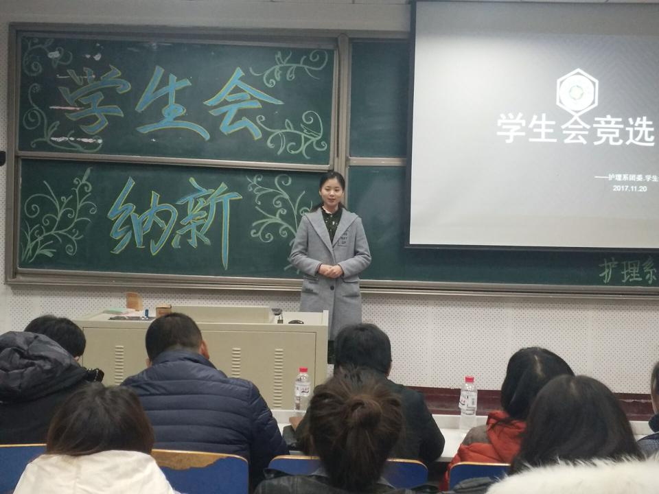 11月20日晚,护理系在教学楼阶梯九教室举行学生会纳新终选。护理系党总支袁静书记、汪明副书记以及孙圣钧、王艺涵和柴月老师出席并担任评委。此次纳新为该系学生会注入了新鲜血液。