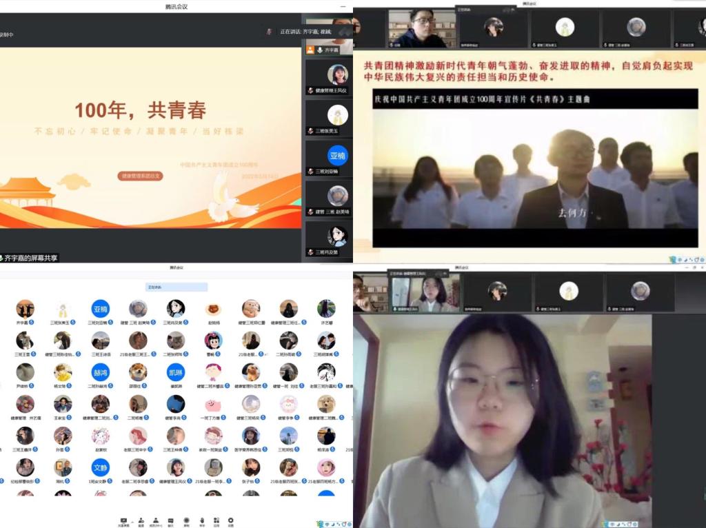 5月14日,举办“100年,共青春”主题线上座谈会。健康管理系全体共青团员及部分教师参会,11名同学发言。同学们的思想意识不断提升,纷纷表示:要坚定不移跟党走,为国家富强、人民幸福、民族复兴贡献青春力量。