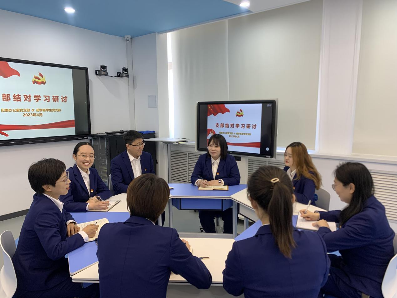 为深入学习贯彻党的二十大精神,切实加强学习型、创新型党支部建设,实现“支部联建、资源共享、优势互补、互助发展”的目标,4月7日,纪委办公室党支部与药学系学生党支部在本溪校区药护楼五楼智慧化教室开展结对共建活动。