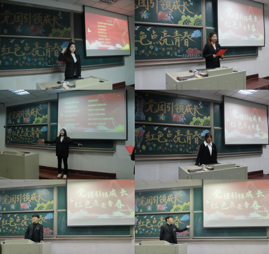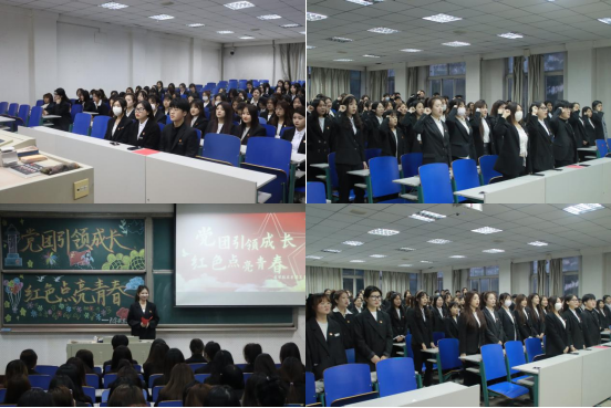 本次主题团课,由李肇民、杨凤、侯本宇同学为主讲,三位同学以PPT演示和视频播放的方式,通过分享红色故事,讲解共青团的使命、共青团的性质、新时代青年的新使命等三方面内容。同学们认真学习,积极表态,踊跃发言,围绕如何践行新时代青年责任与担当展开了热烈讨论。在同唱《光荣啊,中国共青团》的歌声中,同学们庄严宣誓,要扎实学好专业知识,练好专业技能,践行青年使命。