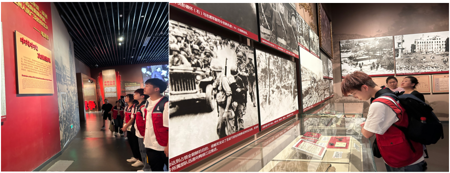 实践团成员以默哀的形式表达对革命先烈们最崇高的敬意和深切的怀念,回顾了抗美援朝的峥嵘岁月,追忆了广大人民群众支援前线的感人事迹和革命先烈不畏牺牲的英雄精神。抗美援朝纪念馆通过大量的史实、影像资料以及浮雕、声光电场景复原技术,生动再现了抗美援朝战争的历史全貌。实践团成员沉浸式的参观学习,深刻感受到了先烈们不屈不挠、艰苦奋斗、无私奉献的革命精神,立志要沿着革命先烈的足迹继续前进,用实际行动践行中国青年的责任、担当与使命。