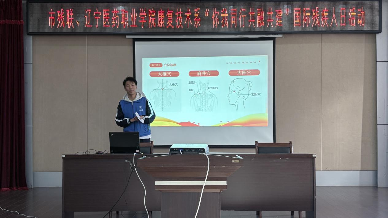 在国际残疾人日来临之际,为深入贯彻落实学院情怀教育铸魂工程实施方案要求,进一步践行关爱残疾人的社会责任,弘扬志愿精神,康复技术系团总支书记张叶、专业教师陈亭西组织带领康复理疗社、中医沙龙社、织翼爱心社会实践团队、脊柱关爱馆科普志愿团队的同学们,走进本溪市残疾人联合会,开展了一场温暖又充实的志愿服务活动,用专业技能为残疾朋友送去关怀与健康。