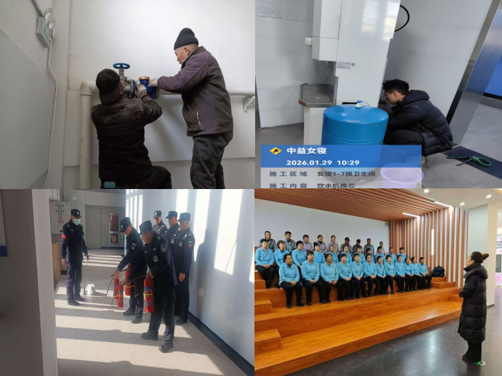 在环境整治方面,中心全面开展公共区域消杀和卫生清洁,集中清理垃圾杂物,彻底整治卫生死角,校园环境面貌焕然一新。为持续提升服务品质,中心还联合第三方单位完成学生公寓直饮水滤芯更换、浴室和洗衣机清洁消杀等工作,全力保障师生生活用水安全和公共设施卫生。