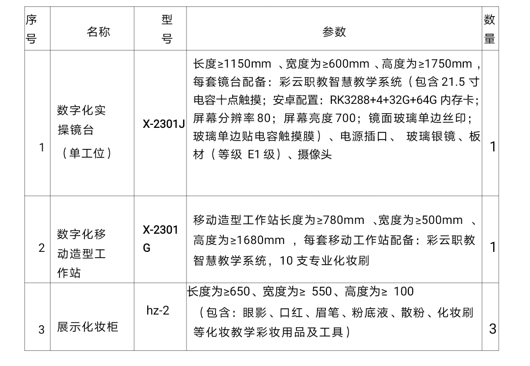 (1+X人物化妆造型仪器设备购置项目)的招标公告