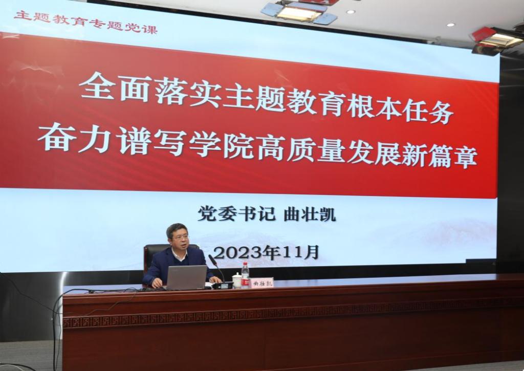 11月22日,党委书记曲壮凯以《全面落实主题教育根本任务 奋力谱写学院高质量发展新篇章》为题讲授主题教...