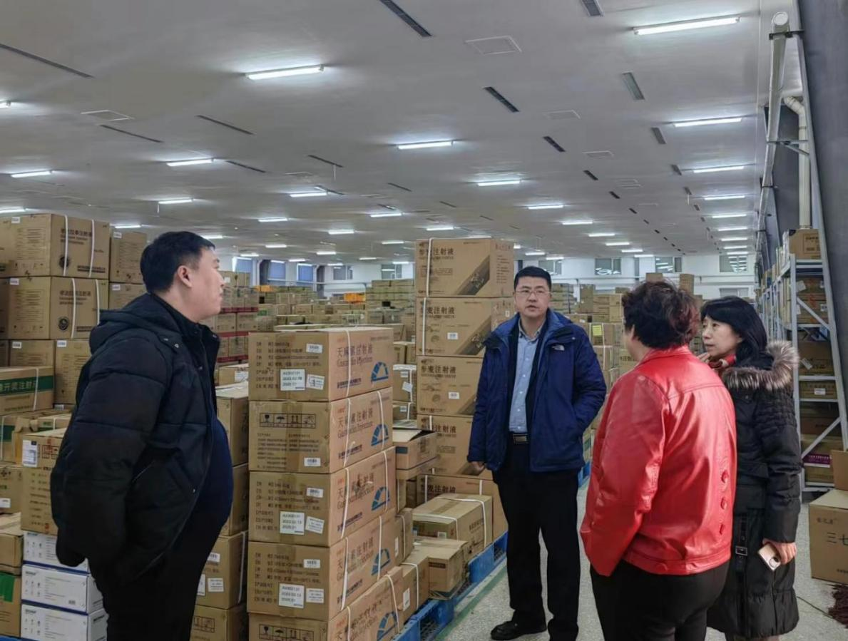 随后,又来到辽宁健康药业有限公司,在董事长郭淑霞陪同下参观了西药品待验库,中西成药常温整货库,就中药物流、中药生产加工相关专业人才需求、人才培养等合作内容进行了洽谈。