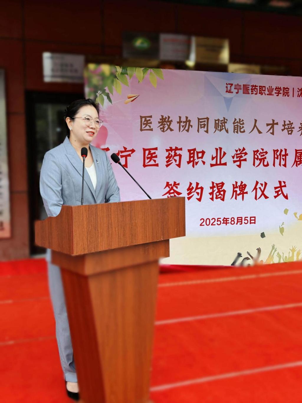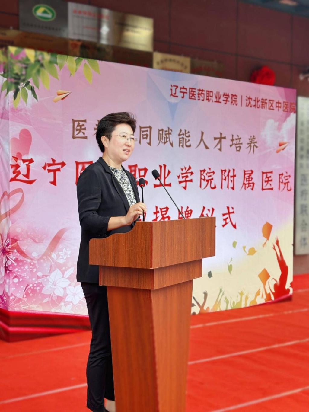 沈北新区副区长夏玮在致辞中对双方合作表示祝贺。她指出,非直属附属医院的建立是沈北新区推动医疗卫生与高等教育协同发展的重要举措,既为辽宁医药职业学院提供了优质的临床教学基地,也为沈北新区中医院搭建了人才培养与科研创新的平台。区政府将全力支持双方合作,期待以此次签约为契机,打造医教协同的区域样板,为健康沈北建设贡献力量。