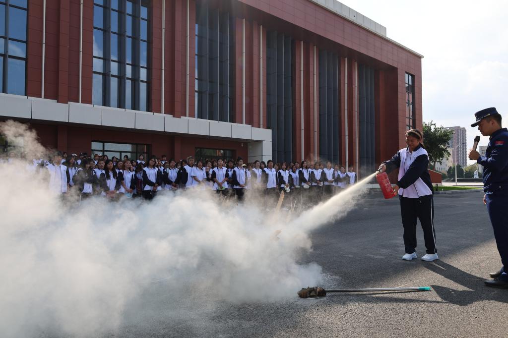 消防队员为学生现场演示灭火器的正确使用方法,示范讲解灭火器的工作原理、适用场景及注意事项。在消防队员的耐心指导下,学生进行实操演练,在实践中成功掌握了应急自救技能。此次“理论+实操”的沉浸式教学,极大地激发了学生的学习兴趣和参与热情。
