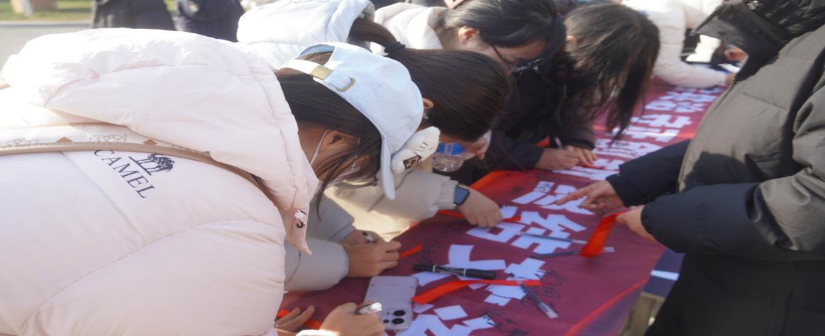 12月1日中午,在“腾飞广场”前,一场“暖宝送爱心,丝带传健康”的主题活动正有序开展。学生志愿者向过往的学生分发了《大学生艾滋病预防手册》,展示了学生绘制的防艾宣传海报,介绍了艾滋病防治知识,向参与活动的学生发放了小礼物。活动最后,同学们郑重地在“社会共治,守正创新,终结艾滋”横幅上签下名字,并将胸前的红丝带挂在“光暖爱心树”上。此次活动的开展,不仅提升了校园防艾知识普及率,更在校园内将爱心传递,为共建健康校园奠定了坚实的基础。