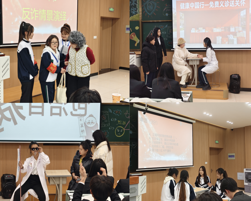 为了让反诈知识更加生动形象、入脑入心,学院安全保卫部组织开展以“剧本里识骗局·竞赛中守安全”为主题的反诈知识沉浸式竞赛情景剧活动,活动中设置情景剧演绎和反诈知识抢答两个环节。参赛团队自编自导自演的《“保健品免费领”的圈套》《票圈风波》《虚拟恋人的致命陷阱》《快递理赔勿轻信,转账汇款先核真》等情景剧,真实再现了骗子的“剧本”和受害者的心理变化过程。选手们惟妙惟肖的表演,引得现场观众阵阵掌声和共鸣,让大家在轻松的氛围中深刻认识到了电信诈骗的隐蔽性和危害性;在随后的反诈知识竞赛抢答环节,现场气氛紧张而热烈。各参赛团队选手沉着应对、踊跃抢答,比分交替上升,最后根据比分评选出优秀参赛团队予以表彰。通过这种寓教于乐的方式,不仅检验了学生对反诈知识的掌握程度,更激发了学生主动学习、深入了解反诈知识的积极性,效果非常显著。