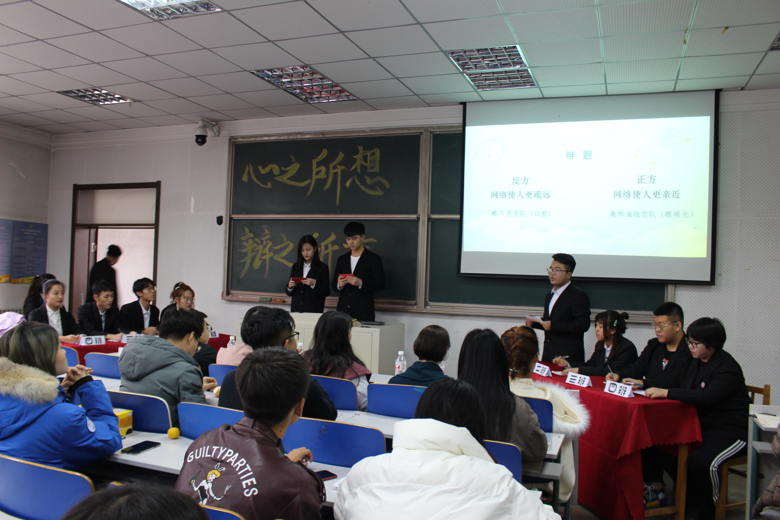 决赛于22日中午在教学楼阶梯二教室举行,医学技术系党总支副书记张春晖及辅导员老师担任决赛评委,决赛的辩题为“网络使人更亲近还是更疏远”。在比赛中,参赛双方都做了充分准备,并能够遵守比赛规则,积极发问踊跃发言。比赛激烈进行,高潮不断,掌声此起彼伏。自由辩论阶段最为精彩,双方你来我往,言辞犀利,就辩题展开论述,选手的口才和应变能力在这一环节展现得淋漓尽致,同时也将辩论赛推向了高潮。最终,正方眼视光代表队获得了本次辩论赛的冠军。(文、图/田腾跃)