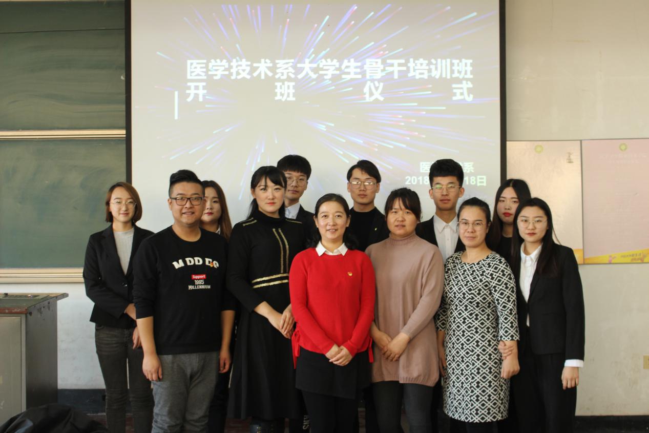为增强学生干部的服务意识、责任意识、效率意识、创新意识、楷模意识,加强学生干部队伍的凝聚力和战斗力,提高学生干部的整体素质。12月18日,医学技术系在综合楼阶梯六教室举办大学生骨干培训班开班仪式。系党总支马丽红书记、张春晖副书记、许德娟副书记、辅导员老师及学生会、社团联合会、志愿者服务团全体学生干部参加了本次开班仪式。