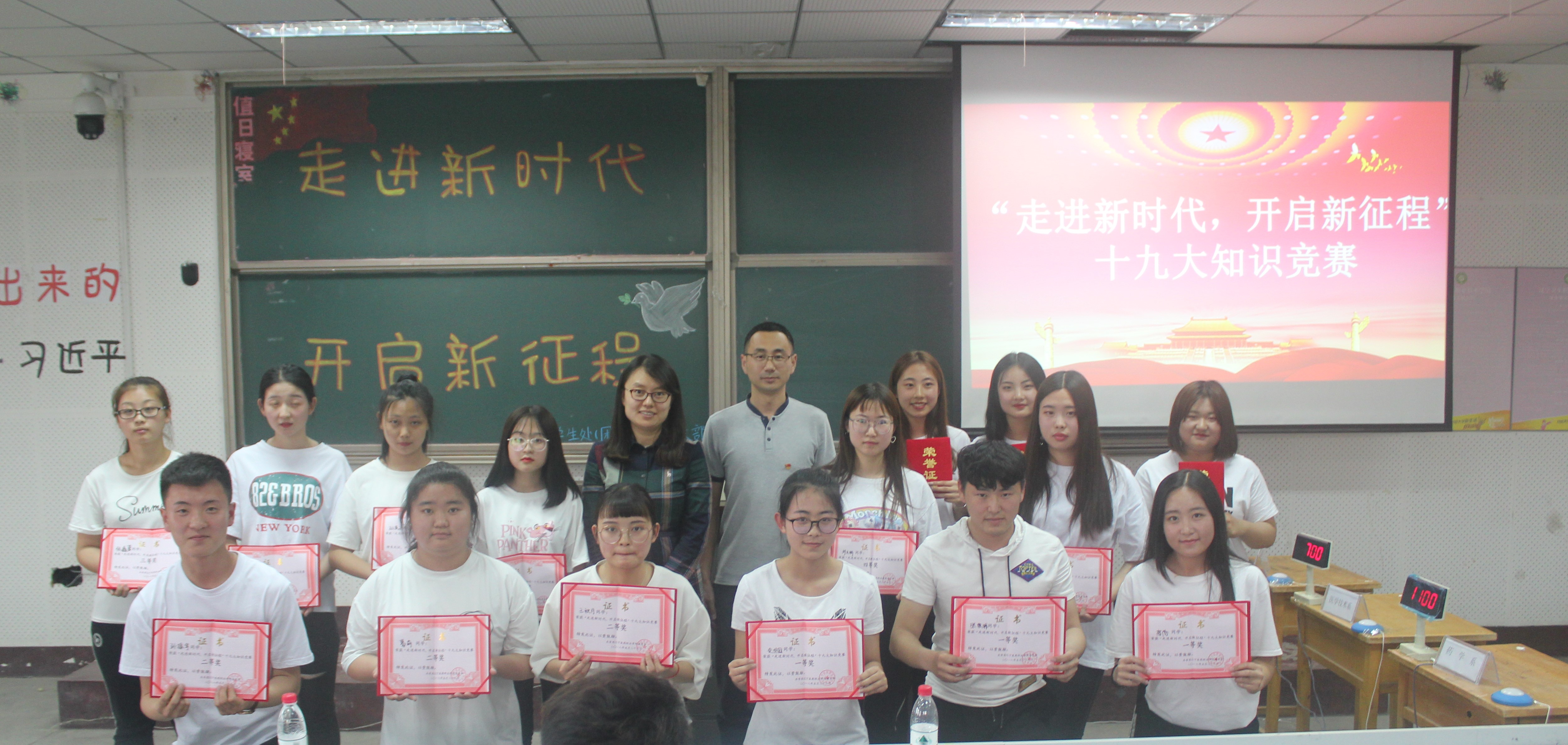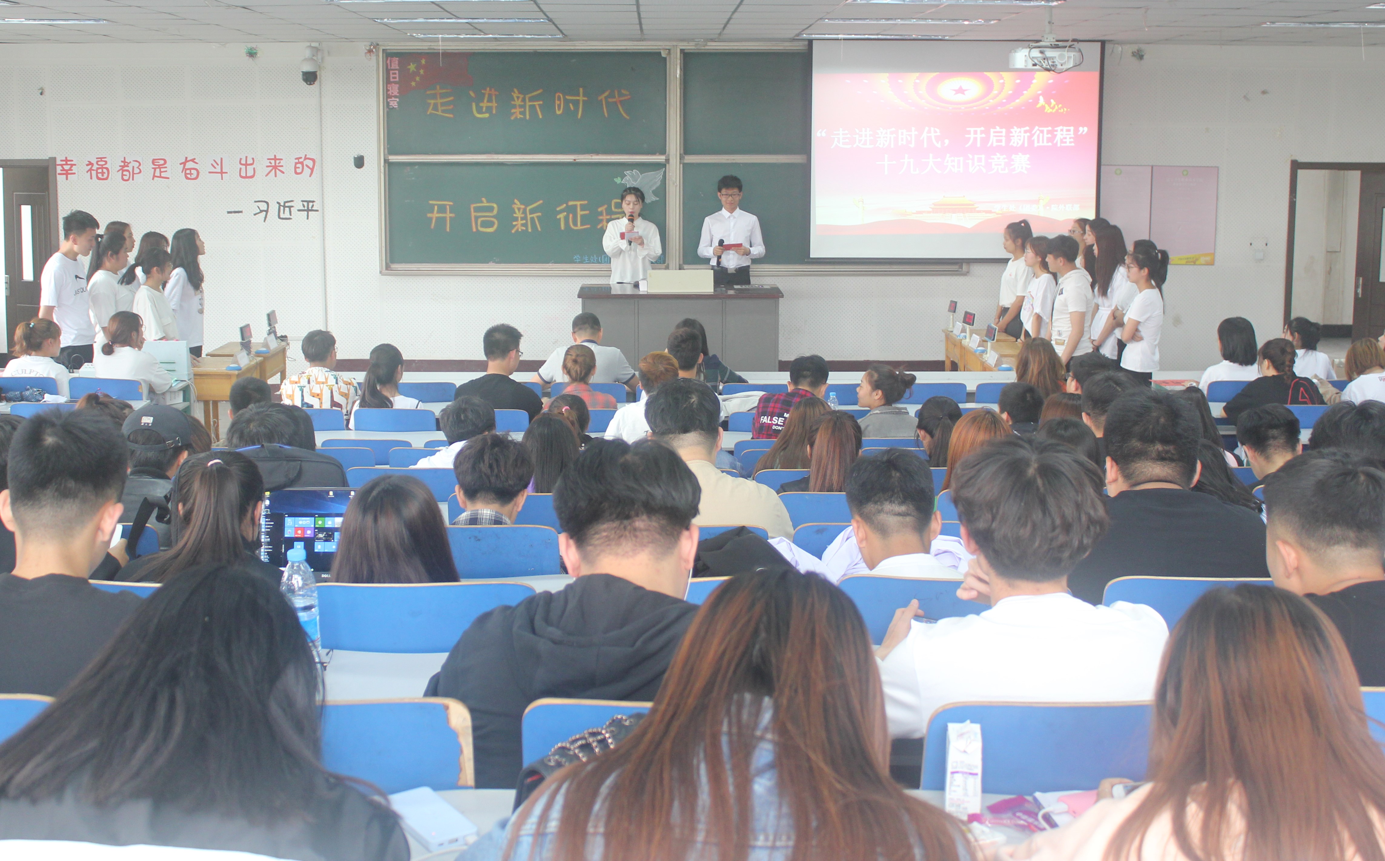 为深入学习贯彻党的十九大精神,引导学生把党的十九大精神转化为思想自觉和行动自觉,学生处(团委)组织学生重温十九大报告原文,并于5月23日晚,在综合楼阶梯八教室举办十九大报告知识竞赛,进一步增强了我院学子爱国、爱党的责任心和使命感。学生处高雁处长、翟玉卓副处长出席比赛。