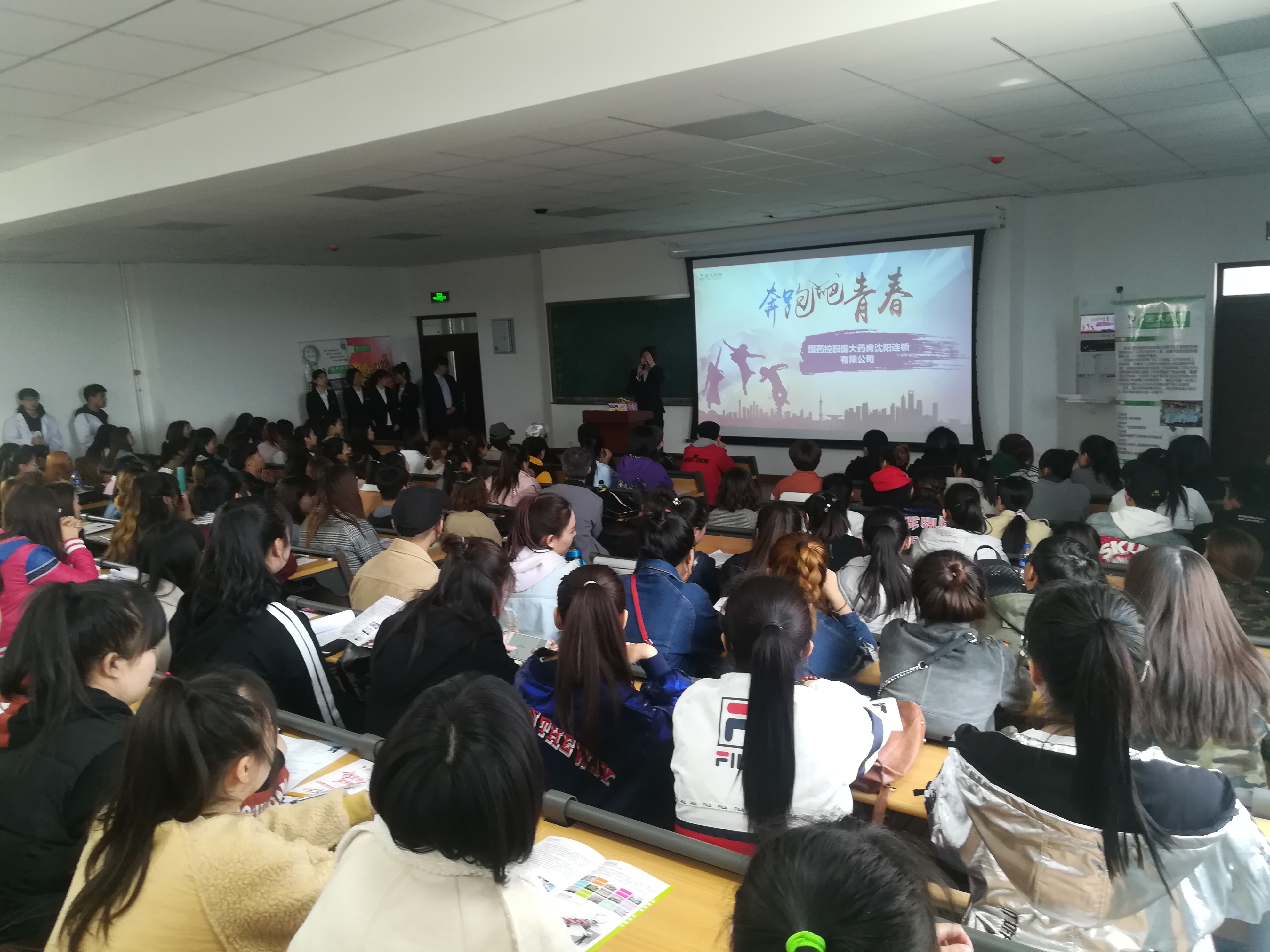4月12日下午,国药控股国大药房沈阳连锁有限公司人力资源部刘莹部长一行7人,在我院药学系(本溪校区)药护楼301教室开展了关于2018年“国大订单班”招生宣讲会。