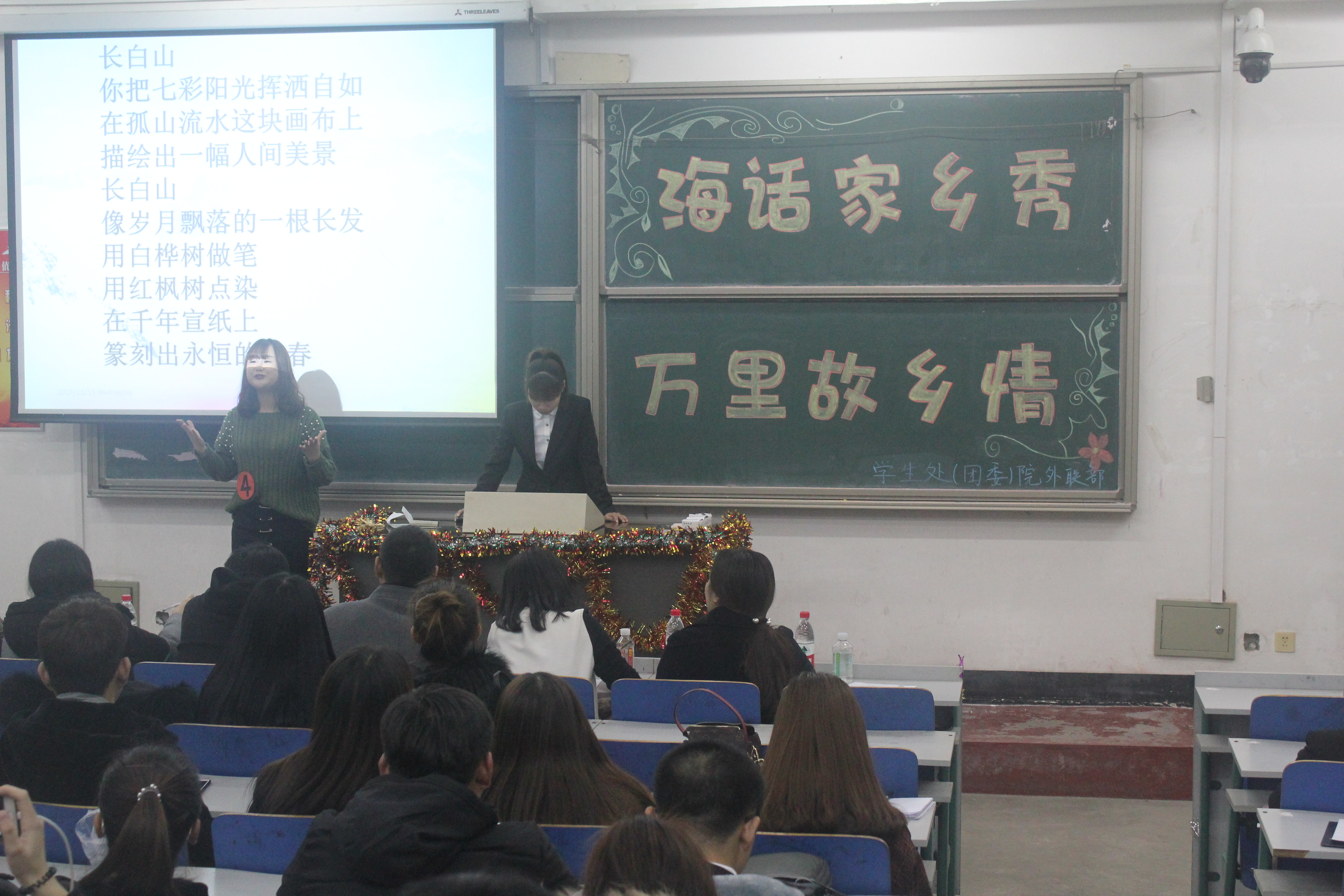 11月15日,学院团委在综合楼阶梯五教室举办“海话家乡秀,万里故乡情”演讲展示大赛,用演讲展示这种现实性和艺术性相结合的表现形式,表达学生对家乡的热爱之情。学院师生近300人观看了比赛。