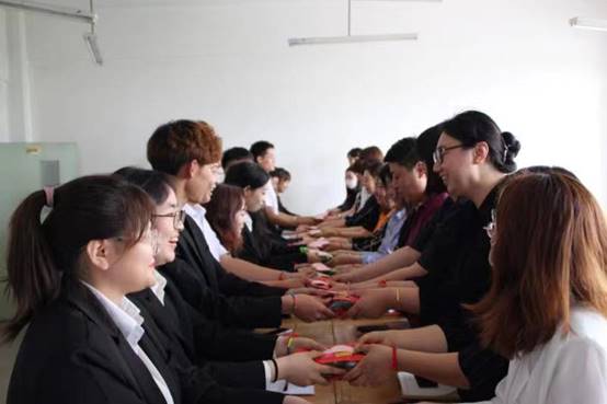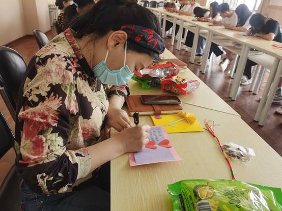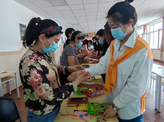 会上,结对子学生进行了自我介绍,教师与结对子学生进行深入交流。师生互赠了端午节祝福卡片,教师们将鼓励关怀的话语写在了贺卡上,学生们也将尊敬、感激之情写在了小小的贺卡上。正值端午佳节来临之际,教师们还为学生准备了粽子,师生互相佩戴五彩线,彼此祝愿端午安康、学习进步,工作顺利,现场气氛欢快融洽。