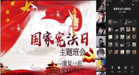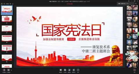 今年12月4日,是第八个国家宪法日,为深入学习贯彻习近平法治思想,弘扬宪法精神,康复技术系通过企业微信召开“国家宪法日”线上主题班会。