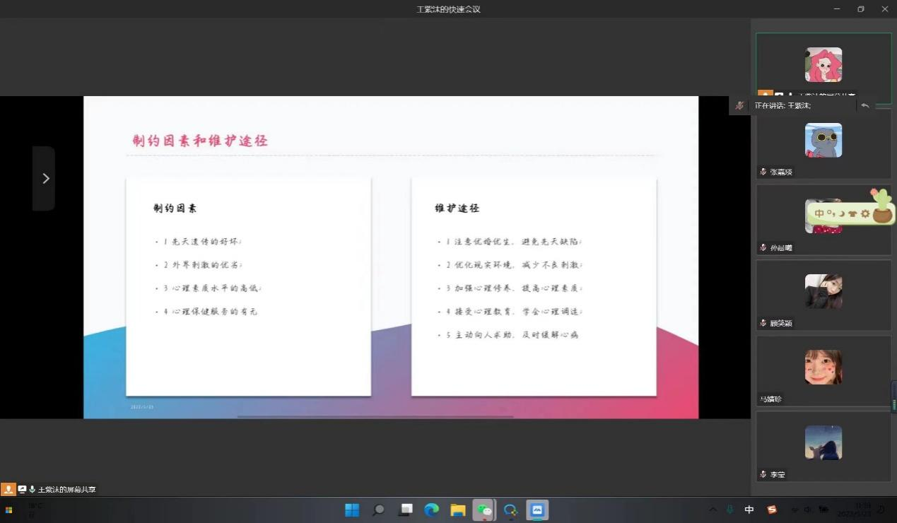 5月10日,组织开展“在爱里携手同行,在阳光下健康成长” 心理健康主题宣讲活动,通过心理健康小测试和问卷调查等趣味环节,开展心理健康知识普及,讲解疫情防控下如何做好自我调适,鼓励同学们以积极乐观的心态迎接美好生活。