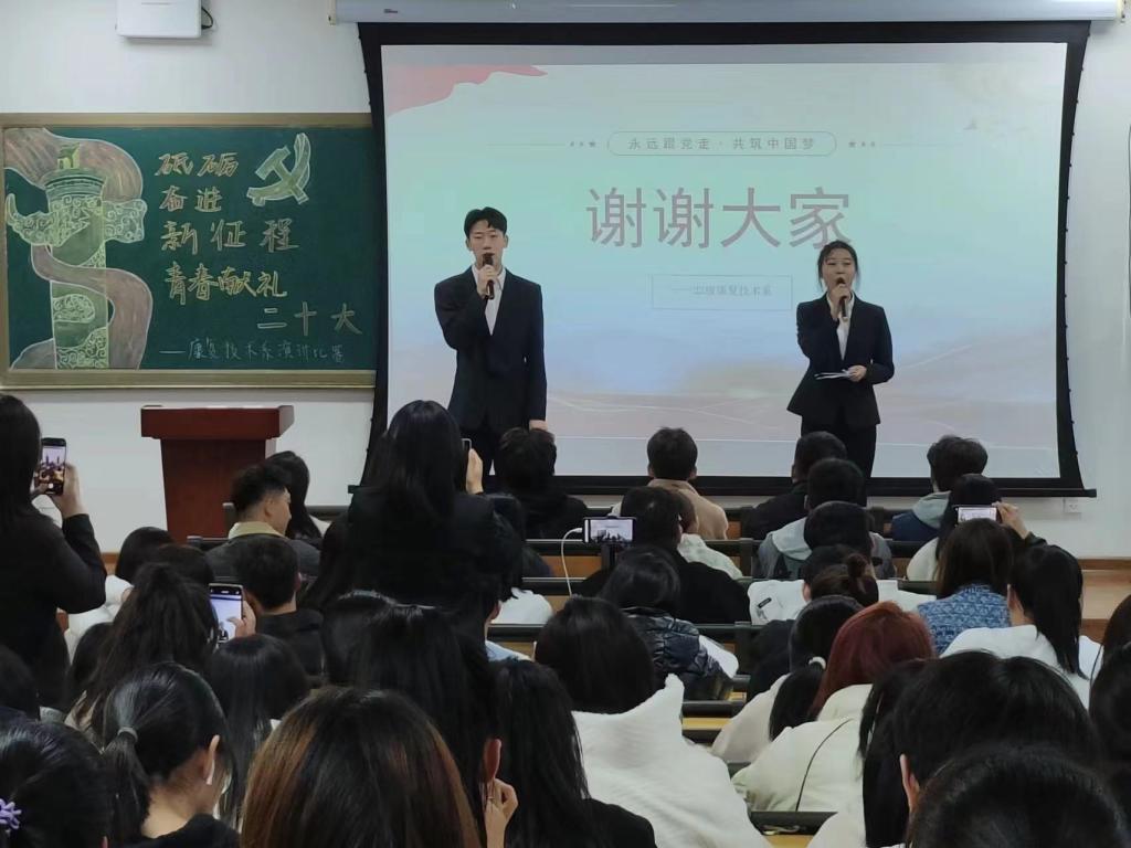 为深入学习贯彻党的二十大精神,充分展现新时代青年大学生昂扬向上的精神面貌。11月5日,康复技术系在医技楼201教室举办“砥砺奋进新征程 青春献礼二十大”主题演讲比赛。