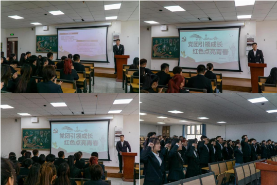 本次主题团课,由李肇民、杨凤、侯本宇同学为主讲,三位同学以PPT演示和视频播放的方式,通过分享红色故事,讲解共青团的使命、共青团的性质、新时代青年的新使命等三方面内容。同学们认真学习,积极表态,踊跃发言,围绕如何践行新时代青年责任与担当展开了热烈讨论。在同唱《光荣啊,中国共青团》的歌声中,同学们庄严宣誓,要扎实学好专业知识,练好专业技能,践行青年使命。