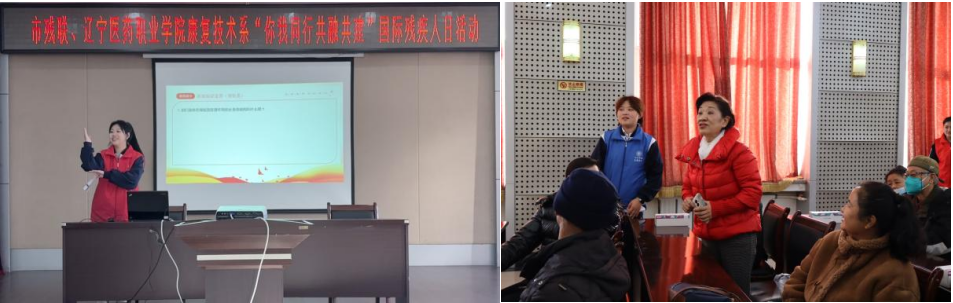 在国际残疾人日来临之际,为深入贯彻落实学院情怀教育铸魂工程实施方案要求,进一步践行关爱残疾人的社会责任,弘扬志愿精神,康复技术系团总支书记张叶、专业教师陈亭西组织带领康复理疗社、中医沙龙社、织翼爱心社会实践团队、脊柱关爱馆科普志愿团队的同学们,走进本溪市残疾人联合会,开展了一场温暖又充实的志愿服务活动,用专业技能为残疾朋友送去关怀与健康。