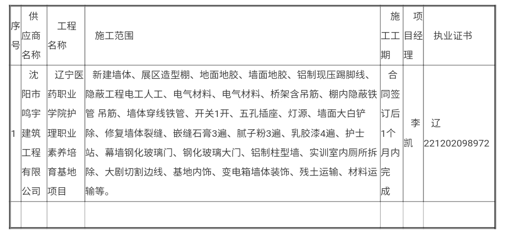 辽宁医药职业学院护理职业素养培育基地项目成交公告