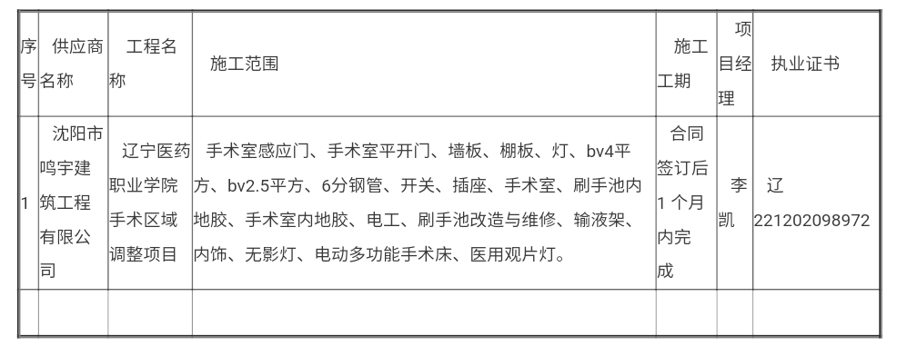 辽宁医药职业学院手术区域调整项目成交公告