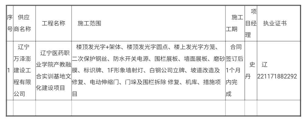 供应商名称:辽宁万泽澎建设工程有限公司