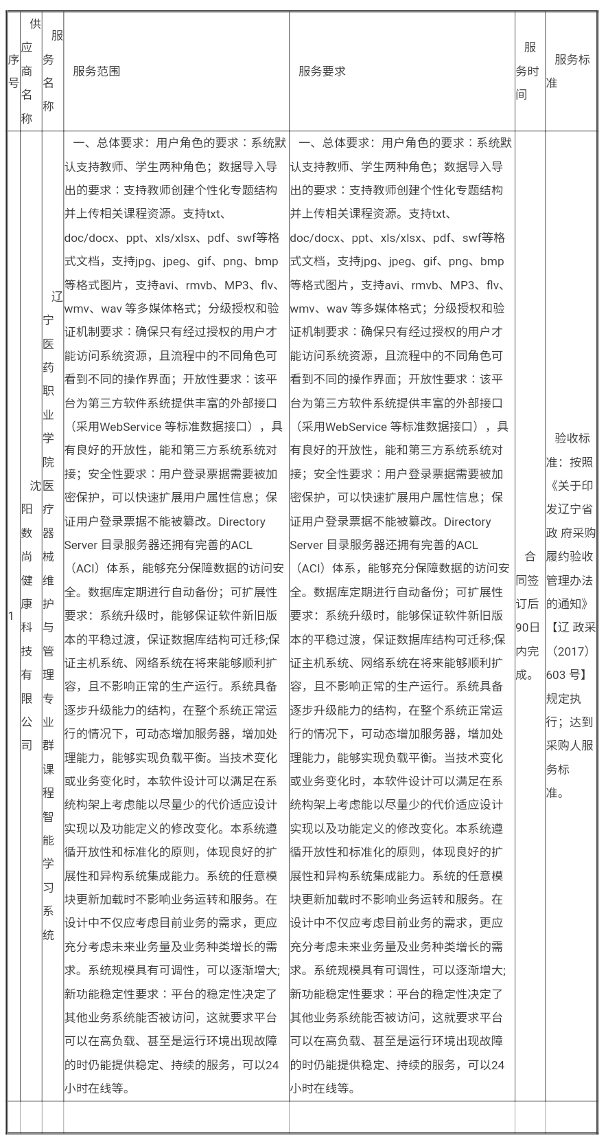 辽宁医药职业学院医疗器械维护与管理专业群课程智能学习系统中标公告